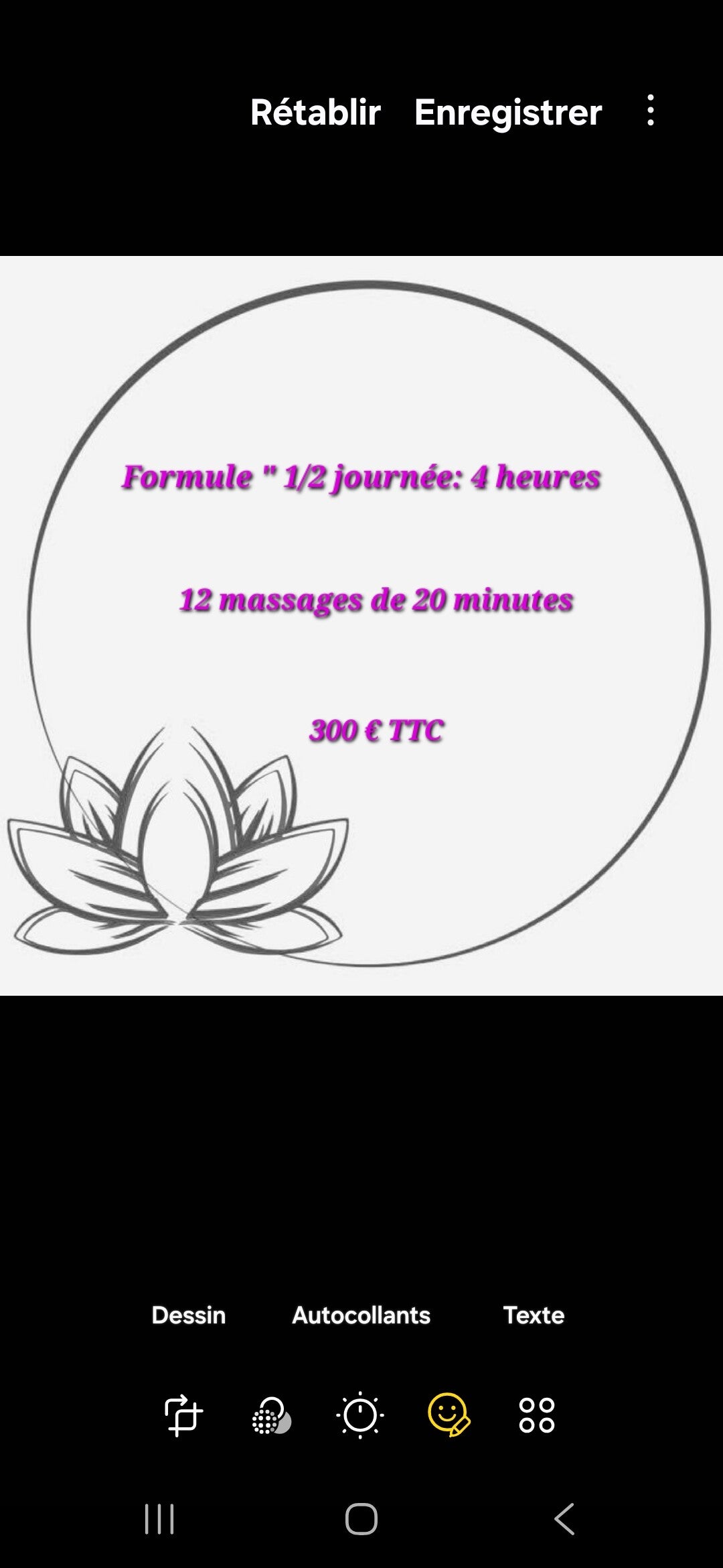 - 3 personnes par heure ( +/- 2 minutes sont raccourcies par massage pour permettre les changements et la prise de contact).